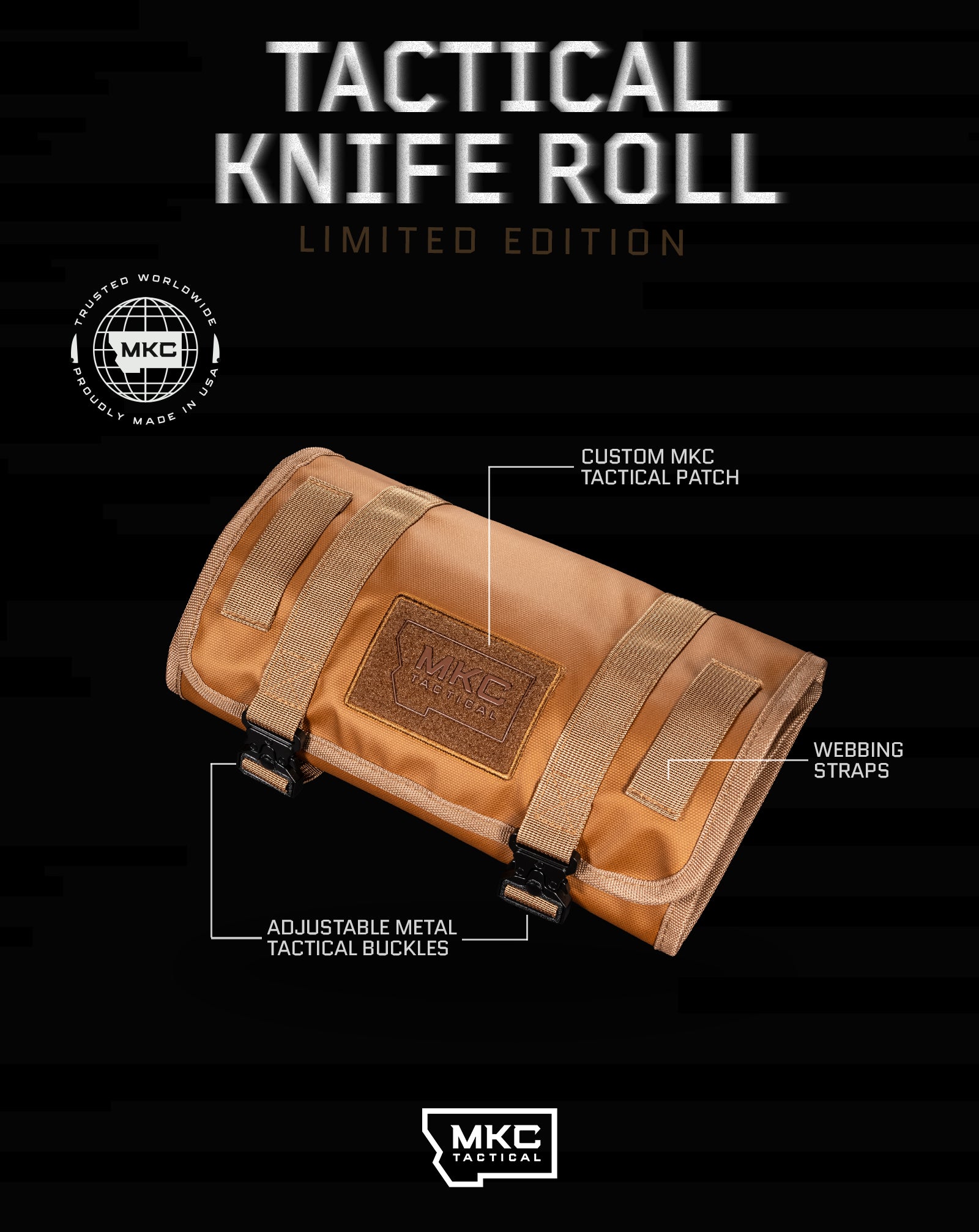 Mission-Ready Organization. Zero Compromise. Your blades are tools, not toys. They deserve protection that matches their purpose. The MKC Tactical Knife Roll secures your gear with metal tactical buckles that lock down tight when you're moving fast through hostile terrain or stacking knives in vehicles.
